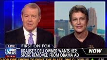A small business owner in a crucial swing state has found herself losing business from loyal customers due to her ad being featured in a Mitt Romney campaign ad. It seems her customers believe she is a Romney backer, but in fact she prefers to keep politics out of her business. And so this business owner demanded that the Romney camp either pull the ad or blur her deli's name from the frames that it's in. The campaign, she says, ignored her pleas.