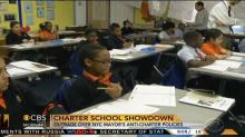 After showing one New York mother who praised the impact charter schools had on her children, the journalist informed, "But plans to expand their schools have been repealed by New York's New York City's new mayor, Bill de Blasio." A CBS graphic surprisingly challenged the liberal politician: "Charter School Showdown: Outrage Over NYC Mayor's Anti-Charter Policies."