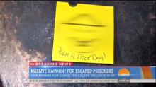 NBC News censored itself on Sunday, after it broadcast the "have a nice day" message left by two prison escapees from New York State on Today. The Post-It note included a caricature of an East Asian man with slanted eyes, a bucktooth grin, and wearing a stereotypical conical hat. Hours later, when NBC Nightly News covered the manhunt for the fugitives, the newscast blurred out the "racially-offensive Post-it note," as John Yang labeled it, three separate times during the correspondent's report.