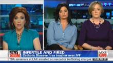 At the top of Thursday's NBC Nightly News, fill-in anchor Savannah Guthrie proclaimed: "Fired for trying to get pregnant. Tonight, the teacher versus the Catholic school." Guthrie was referring to Indiana Catholic school teacher Emily Herx claiming she was fired after receiving in vitro fertilization treatments and touted the case as "another legal showdown over religious and reproductive rights."