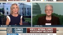 During her 12 p.m. ET hour MSNBC show on Tuesday, host Andrea Mitchell teed up Environmental Protection Agency administrator Gina McCarthy to promote a new White House report on climate change and push President Obama's left-wing environmentalist agenda: "Let's imagine for a moment that there's a baby being born right now....What future does this child face if nothing is done? What is the water level? What is going to happen to our coasts? What will – temperature changes?" [Listen to the audio or watch the video after the jump]