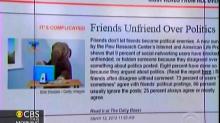 CBS This Morning on Tuesday highlighted a recent Pew Research poll that "says politics is now making the Internet very unfriendly....nine percent of social networking users say they've un-friend...or blocked someone whose politics they disagree with." But the morning show failed to mention that the poll explained that "liberals are the most likely...to block, unfriend, or hide."