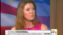 Hill brought on the new CBS News White House correspondent, as well as Nancy Cordes, their congressional correspondent, to discuss the return of Rep. Gabby Giffords to the floor of the House of Representatives on Monday and their passage of the compromise debt ceiling legislation. Towards the end of the segment, after she and O'Donnell laughed it up about Vice President Biden's crack about Giffords being part of the "cracked heads club," the anchor asked her question about the White House's take on the bill. Her colleague replied with her off-the-cuff prediction: