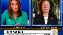 On Wednesday's Early Show, CBS's Erica Hill pressed Rep. Michele Bachmann during an interview about her attack on Newt Gingrich for his notorious 2008 commercial with Nancy Pelosi on climate change: "Why is that a bad thing, to try to work across the aisle?" This came just two days after the morning show wondered if Gingrich himself needed to "play a little more dirty...to win the bid."