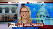 Latest dispatch from President Obama's Department of Terrible Deeds in the Name of Christ . . . Morning Joe invited the State Department spox Marie Harf on today to give her a chance to clarify what she said to Chris Matthews about the US being unable to "kill our way" out of the ISIS problem and the need to focus on the "root causes" of terrorism.