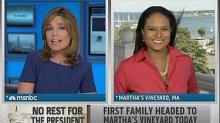 Filling in for Andrea Mitchell during Thursday's 1 p.m. ET hour on MSNBC, Savannah Guthrie talked to correspondent Kristen Welker about President Obama's vacation plans: "Kristen, do you have any idea what he and the First Family plan to do while they're spending this time on Martha's Vineyard? I'm going to venture a guess there will be golf and ice cream, if past vacations are any indication."
