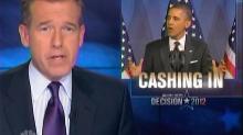 Leading off Thursday's NBC Nightly News, anchor Brian Williams enthusiastically touted the President's fundraising efforts: "President Obama cashing in the day after his gay marriage announcement." Moments later, Williams proclaimed: "Tonight, it is clear President Obama is hoping, at least, to capitalize on the history he made yesterday, becoming the first American president to come out in favor of same-sex marriage."