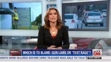 An on-screen graphic during the segment also suggested that a lack of strict gun control was partially to blame for the incident: "Which Is To Blame: Gun Laws Or 'Text Rage'?" [MP3 audio available here; video below the jump]