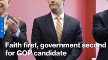 "Faith first, government second for GOP candidate," blares a teaser headline on MSNBC.com. They say that like it's a bad thing.
