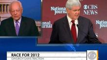 Fill-in anchor Jeff Glor asked the CBS political director, "What are the chances Newt Gingrich is the nominee?" Dickerson punted on making a prediction, but borrowed a line from colleague Jan Crawford, stating that "he has a great deal of baggage." When co-anchor Rebecca Jarvis followed up by asking about how the Obama reelection campaign saw the former Speaker, he raised the "likeability" issues with Newt: