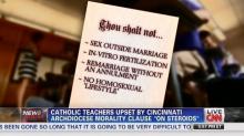 The correspondent sympathized with the plight of one teacher who is "walking away from her dream job after 14 years," due to the archdiocese's "morality clause on steroids," which reemphasizes the Catholic Church's teachings on sex: [MP3 audio available here; video below the jump]