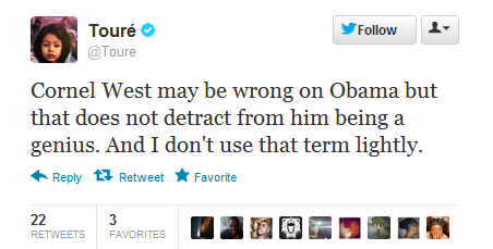 Is it any wonder that Touré has referred to Professor West as a "genius"?