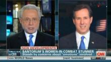 Pressing Rick Santorum on his opposition to women serving in combat, CNN's Wolf Blitzer quoted a liberal veteran who harshly criticized Santorum's policy. Blitzer did not identify the ... at 5:02 p.m. EST, is as follows: [5:01] WOLF BLITZER: On a day when a Republican presidential ...