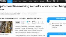 Surprise, surprise: the media still can’t seem to get their act together on the Pope’s words. Continuing the sloppy reporting on the Pope’s recent press conference, USA Today’s print version flubbed the Pope’s remarks on women’s ordination.