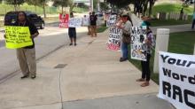 "This [Redskins name] controversy is not going away," insisted NBCSports.com writer Michael David Smith in a story filed this afternoon. His proof: a handful of protesters in Houston complaining about the visiting Washington NFL team's mascot and logo.