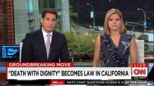 CNN wasn't interested in balance on Tuesday, as three straight programs brought on pro-euthanasia activists to tout California's new "End of Life Option Act," which was signed into law on Monday. All three also left out opponents of the legislation. CNN Newsroom featured a man whose wife was the subject of a HBO documentary titled How to Die in Oregon. On At This Hour, Kate Bolduan hyped the "groundbreaking move," and interviewed a "right to die advocate" with terminal cancer. Legal View turned to the widower of pro-euthanasia activist Brittany Maynard, who took her life in November 2014.