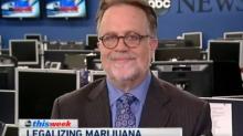 Sitting in on ABC’s This Week, guest host Jonathan Karl brought on New York Times editorial page editor Andrew Rosenthal to discuss an editorial titled “Repeal Prohibition, Again.” The unsigned piece proclaimed “It has been more than 40 years since Congress passed the current ban on marijuana, inflicting great harm on society just to prohibit a substance far less dangerous than alcohol. “ Online, the stars on the flag transform into cannabis leaves.