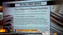 On NBC's Today, Savannah Guthrie managed a scant 13 seconds as she introduced a separate story. The co-host chided, "Well, as President Obama weighs his decision here, Dick and Liz Cheney are out with a new op-ed this morning blasting the Obama administration's positions during wartime." She noted that Cheney and daughter Liz slammed, "Rarely has a U.S. president been so wrong about so much at the expense of so many." CBS This Morning offered the most coverage fo the op-ed, 48 seconds. [See video below. MP3 audio here.]