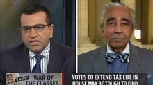 Varney, filling in for Cavuto, set Rangel up by asking him why he wanted to borrow so much money now. Rangel ignored the question, instead expressing his glee at the deal the Senate had reached. He exclaimed, “[W]e have kicked the can down the road and I'm happy.”  Varney then made his play: [Watch the video below the break.]