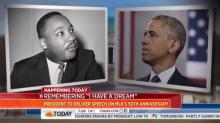 Wednesday's CBS This Morning shamelessly promoted President Obama's upcoming address commemorating the 50th anniversary of Martin Luther King's 1963 "I have a dream" speech by featuring nothing but race-related clips from the President's past speeches. Jeff Pegues hyped the "big names" set to speak at the anniversary celebration, but underlined "the headliner: the nation's first black president, delivering a speech and standing where Dr. King did half a century ago."
