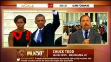 Gregory was referring to the upcoming 50th anniversary of Martin Luther King's "I Have A Dream" speech and teed up Democratic Congresswoman Donna Edwards: "President Obama going to recreate that moment, in effect, on the – on the Washington Mall. How significant is it?" Edwards replied in part: "I think he's going to speak to economic inequality....give him an opportunity to follow up on the Dr. King dream, saying it's social equality."