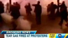 On ABC's World News, fill-in anchor George Stephanopoulos echoed that sentiment: "...one young man has become a symbol of their resolve." Correspondent Abbie Boudreau followed by declaring: "With tensions mounting daily, the name Scott Olsen has become a national rallying cry for Occupy Wall Street....injured Tuesday night, as police began firing tear gas during the Oakland crackdown."