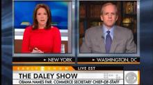 Following Plante's report, co-host Erica Hill got reaction from former George W. Bush adviser Dan Bartlett and wondered: "As you look at this appointment of Bill Daley....coming over from Chase, he sits on a number of corporate boards. Is the message from the White House essentially not only that the White House is open for, but also open to, business this morning?" Bartlett replied: "I really think that is the clear message. If you take this, coupled with the tax compromise they made at the end of last year, it is sending an important signal."