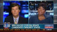 On Fox News's America Live Friday, liberal commentator Jehmu Greene said to the Daily Caller's Tucker Carlson, "To question [Massachusetts Democratic senatorial candidate Elizabeth Warren] on her qualifications is going to be something that does appeal to folks like you, voters like you - bow-tying white boys" (video follows with transcribed highlights and commentary):