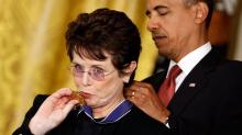 Under the headline “Obama jabs at Putin’s anti-gay stance,” USA Today topped its front page Wednesday with a blatant Obama-loving editorial from sports columnist Christine Brennan. It began: “President Obama's selection of Billie Jean King for the official U.S. delegation to the 2014 Sochi Winter Olympic Games is a stroke of genius.” It was a "perfect call," Brennan claimed. See her Olympic free-speech hypocrisy below.