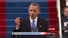 After Stephanopoulos asserted that Obama made the "first explicit mention...in an inaugural of gay Americans," Sawyer seemingly worked in a subtle plug for her network's primetime line-up: "He is talking about a modern American family. He's talking about gay and straight, rich and poor, everyone together." Stephanopoulos made the speech all about Obama: "The President, perhaps thinking of himself as he said 'Americans are made for this moment and we will seize it.' You could almost hear him talking to himself in that moment." [See video below. MP3 audio here.]