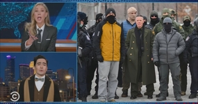 Jon Stewart mocks Border Patrol Chief Greg Bovino for denouncing politicians that have compared ICE to the Gestapo, "You know, first of all, it is slightly terrifying that you might be dressing for the job you want." (1/3) https://t.co/ZmPJRnr3J3