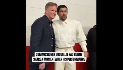 NFL Commish ‘Hearts’ Bad Bunny: They Hug, But Don’t Kiss, Don Dresses