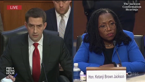 As news junkies spend the week monitoring live coverage of the Ketanji Brown Jackson confirmation hearings on cable news or on PBS, they can quickly determine that the TV anchors and analysts are lining up very supportively of Judge Jackson's "historic" candidacy. PBS reporter Geoff Bennett was so eager that he relayed the opinion of Jackson's friends that a tweet equating KBJ with CRT (…