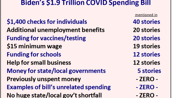 [W]hat we have been treated to instead are mindless talking points (‘Go Big’) politically inspired lines in the sand ($1.9 trillion in stimulus, a $15-an-hour minimum wage, $1,400 rebates) and transparently partisan proposals to reward the Democratic base, buy off White working-class voters and avenge the partisan outrages of the Trump era.