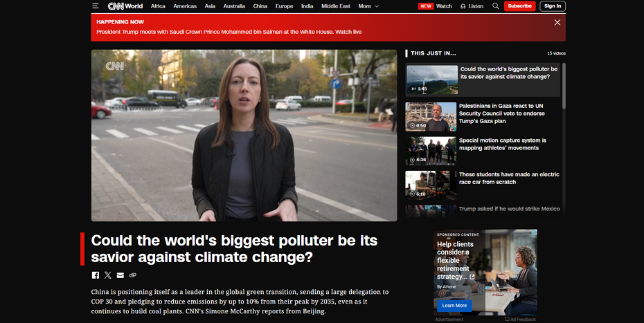 CNN International Senior News Desk Reporter Simone McCarthy’s header for the segment on the CNN website was almost too stupid to believe it wasn’t a Babylon Bee headline: “Could the world's biggest polluter be its savior against climate change?”