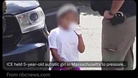 “Immigration and Customs Enforcement agents held a 5-year-old autistic girl outside her Massachusetts home to pressure her father to surrender to authorities last week, according to the girl's family.”