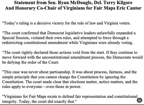 “Today’s ruling is a decisive victory for the rule of law and Virginia’s voters,” McDougle said in a statement cheering the decision: