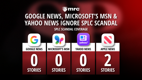 “Of course the Big Four News Apps went all but mum on a major leftist scandal involving the SPLC,” said MRC President David Bozell. “Far be it for the tech giants to undermine one of the left’s favorite excuses for silencing conservative speech: accusing dissenters of racism and hate. Even when Apple News did include stories mentioning the SPLC’s indictment, it used articles that attempted to circle the wagons for the leftist narrative.”