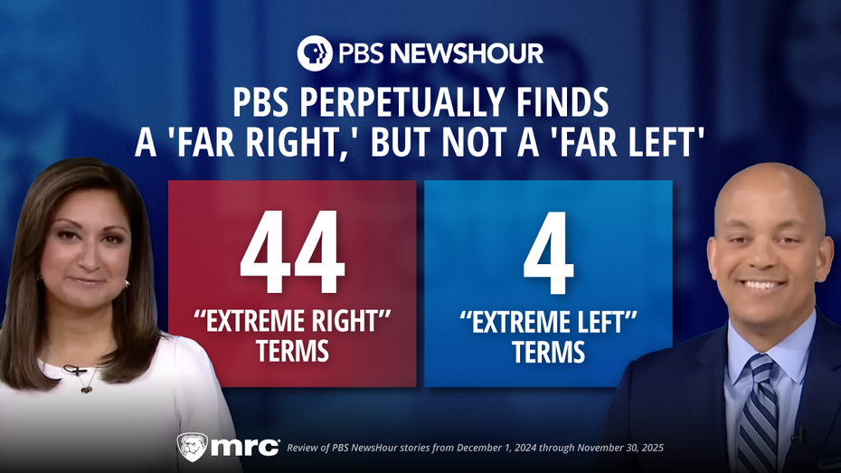 MRC analysts counted up the “left-wing” and “right-wing” style ideological labels used by anchors, reporters, and contributors on the PBS News Hour regarding American politics from December 1, 2024 through November 30, 2025. PBS News Weekend programs were not included.