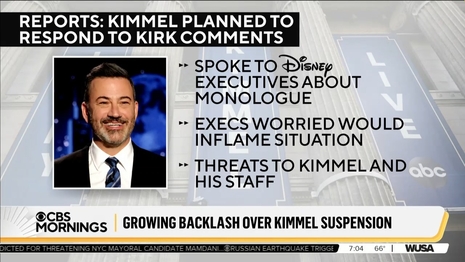 CORDES: [B]oth the President and his FCC chair have now said that they may not stop with Jimmy Kimmel, that there are other TV host or even journalists that they think do not belong on the air. Critics, including some Republicans, say any move to pull broadcast licenses would be unprecedented and potentially unconstitutional.
