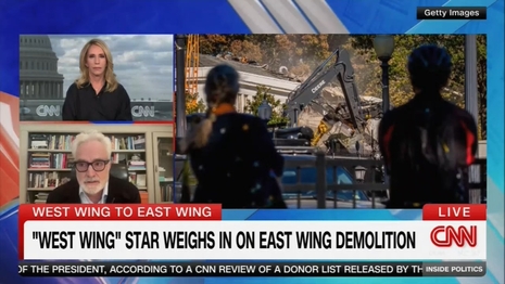 [ON-SCREEN HEADLINE: West Wing to East Wing; “West Wing” Star Weighs in on East Wing Demolition]