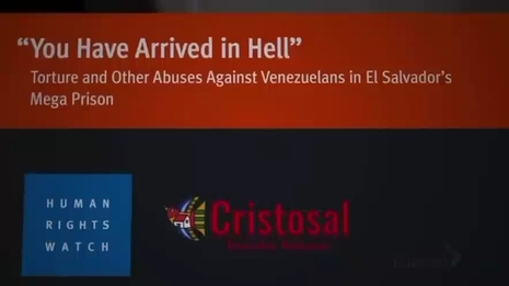 ALFONSI: Juan Pappier is a deputy director at the nonprofit Human Rights Watch. In an 81-page report released in November, the organization concluded there was systematic torture and other abuses at SCOTT, and that nearly half of the Venezuelans the U.S. sent there had no criminal history. Only eight of the men had been convicted of a violent or potentially violent offense. [TO PAPPIER] How do you know they weren’t gang members?