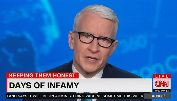 Throwing out his pompous “keeping them honest” tagline, Cooper ignored the fact that Gilmartin was already exposed to the virus after his wife had contracted it and railed against them anyway: