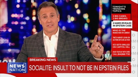 “I have to tell you something. I’m all about the Epstein Files,” proclaimed NewsNation host Chris Cuomo to his colleague Elizabeth Vargas during the Tuesday night hand off to his show. Cuomo blustered about the files were “our best chance to see and expose and maybe change the two-tiered reality that we all know we live in.” But while Cuomo would go on to talk about the six names that were called out by House Democrats in the files, there was one name in the files he didn’t want to talk about: his.