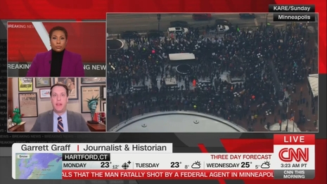 On Monday’s CNN This Morning, CNN Guest and WIRED contributor Garrett Graff praised Minnesota protestors for supposedly being non-violent and said viral videos only showed federal law enforcement being violent. In reality, many other videos have shown protesters being violent, including a riot outside a hotel where federal law enforcement was staying on Sunday night into Monday morning.