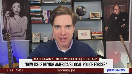 JONATHAN LEMIRE: And on this subject, conservative writer Matt Lewis contends that ICE is buying America's local police forces. In a new piece on Substack, Matt writes about a financial arrangement that, he argues, raises the sort of eyebrow arching questions usually reserved for lobbyists and free steak dinners. Matt joins us now. Matt, good to see you. An important piece. So explain for us, if you will, what these 287(g) partnerships are and why they matter.