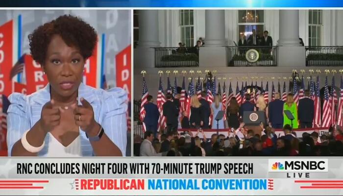 MSNBC’s coverage for the first three nights included Joy Reid on Wednesday snapping at new Americans and the White House for featuring a naturalization ceremony during the convention: “He uses those people as props. He used people that would be from the s-hole countries he would not let into this country.”