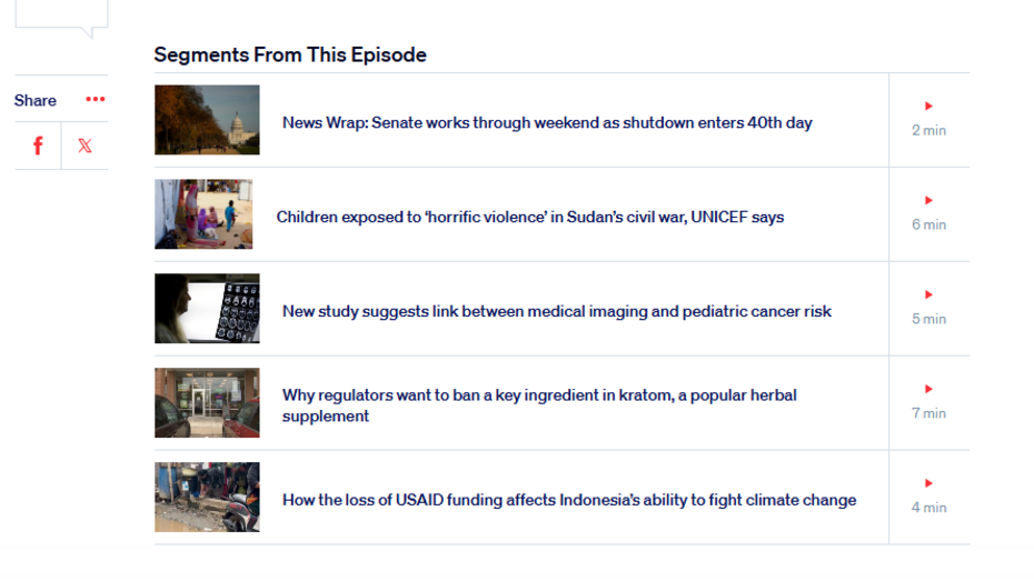 There's not a lot of "breaking news" on PBS Weekend News. It looks more like a magazine show, with features that are not time-sensitive. Here's the lineup for last Sunday, concluding with a piece on "How the loss of USAID funding affects Indonesia's ability to fight climate change."