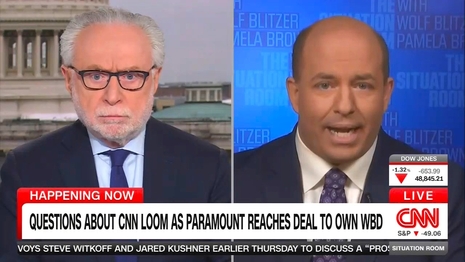 Paramount's victory in the Warner Bros. Discovery merger battle is causing great unrest inside CNN. Fox News is finding anonymous CNN staffers freaking out at the news. On CNN's The Situation Room, chief media analyst Brian Stelter inspired an unintentional laugh riot when he said Paramount's goal of news that's "balanced and fact-based....sure sounds a lot like CNN's mission."