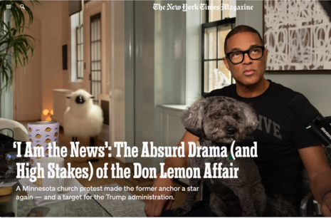 The New York Times Magazine is clearly inflating Don Lemon’s already massive ego with a story titled: “‘I Am the News’: The Absurd Drama (and High Stakes) of the Don Lemon Affair.”